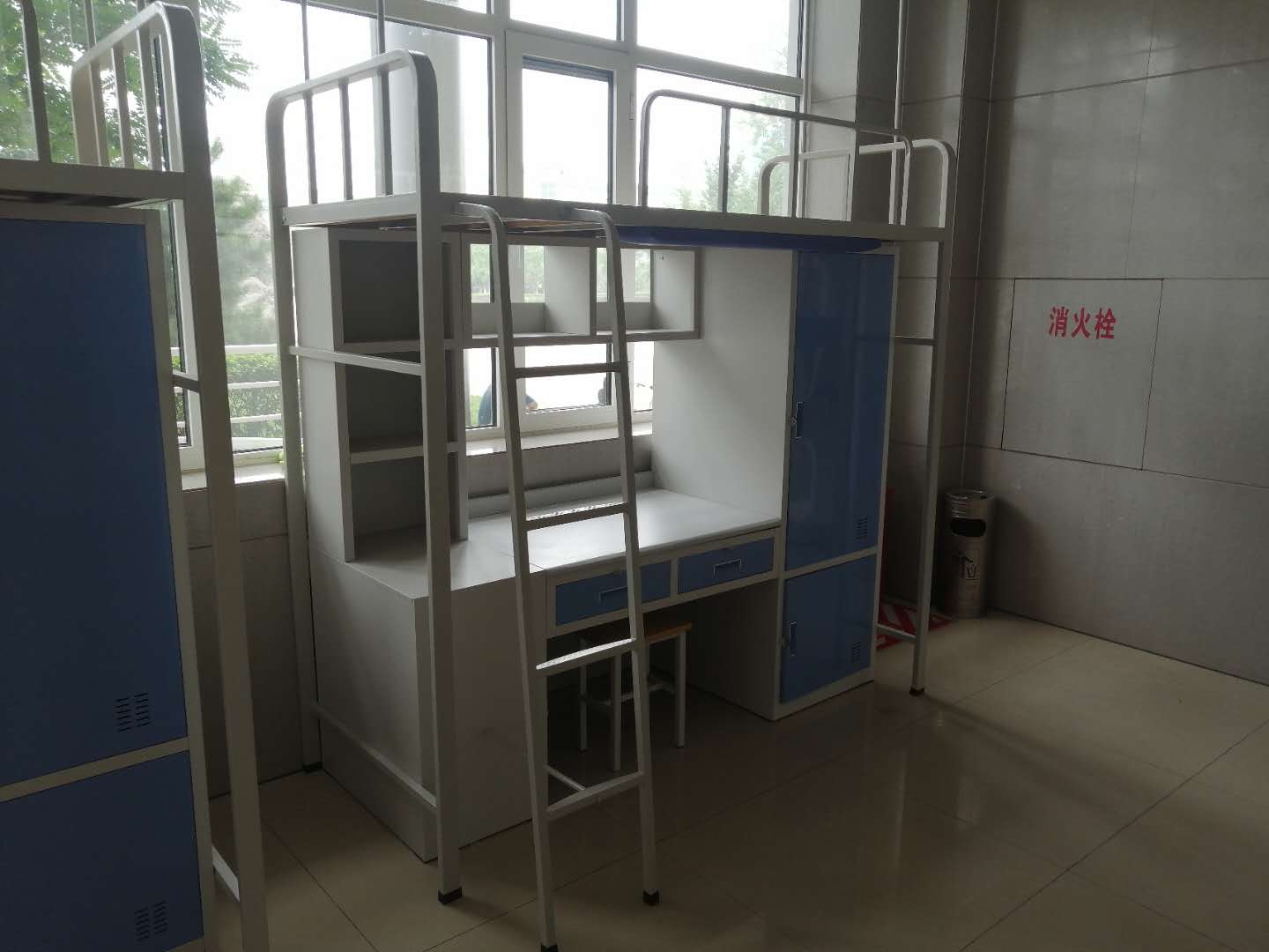 床板:1.5cm松木床板牢固可靠、美觀。床板底部設有長形防撞軟墊,外面選用優(yōu)質面料,內襯40mm厚高回彈海棉;里面用實木板制作,學生在下面起坐時不易磕碰頭部, 保障學生安全。
