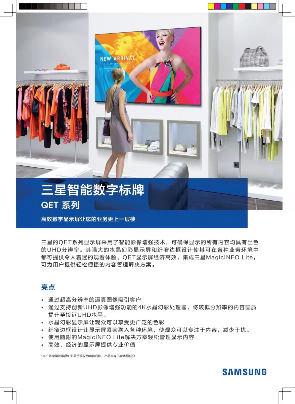 三星QE75T 75英寸壁掛廣告4K超清智能網(wǎng)絡(luò)商用顯示器窄邊框會(huì)議展覽展示信息播放終端