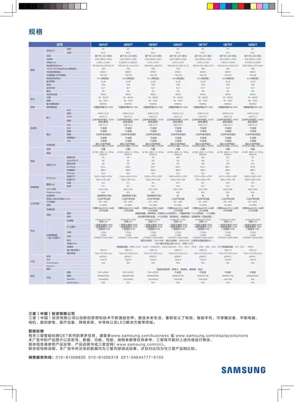 參數(shù) [品牌] 三星 [單位] 臺(tái)