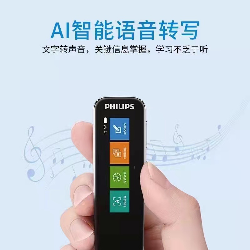 飛利浦VTR7300這款是詞典筆,就是可以從小學用到大學。這你也可以上架,辦公也能用的著,他是直接掃詞掃句啊翻譯的,離線使用不用網(wǎng)絡也是不用下載,只要是書本兒上的紙質(zhì)上的英文單詞,句子都能掃描,帶英式,美式發(fā)音,還有就是它支持錄音功能,錄音轉換文字,它也是一個翻譯機,可以對話交流使用實時翻譯的